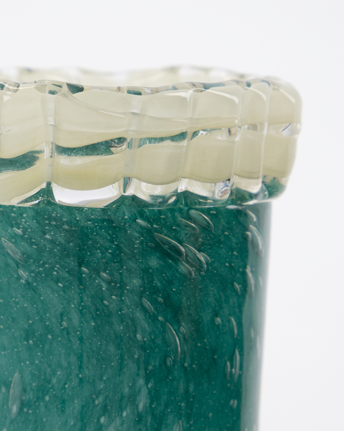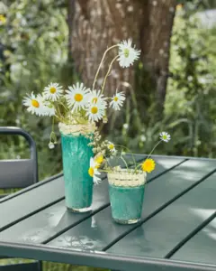 Giv dit hjem et strejf af kunstfærdighed med denne charmerende håndlavede grønne glasvase. Dens unikke bobleglasstruktur, der fremhæves af små bobler, skaber en iøjnefaldende visuel effekt. Den elegante kontrast i form af en buet beige kant gør den sofistikeret og alsidig i ethvert rum. Brug den til at vise friske blomster eller som en varm fyrfadsstage, der tilføjer farve og karakter til din indretning. Denne vase er en uundværlig tilføjelse til dem, der ønsker at bringe levende stil ind i deres bolig. - Håndlavet med unik karakter- Iøjnefaldende boble-glasstruktur- Grøn vase med beige kant- Alsidig til blomster eller stearinlysBrug denne unikke vase i din indretning, og nyd dens karakteristiske charme.