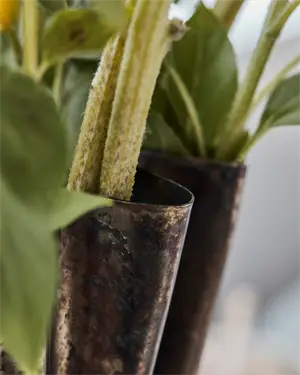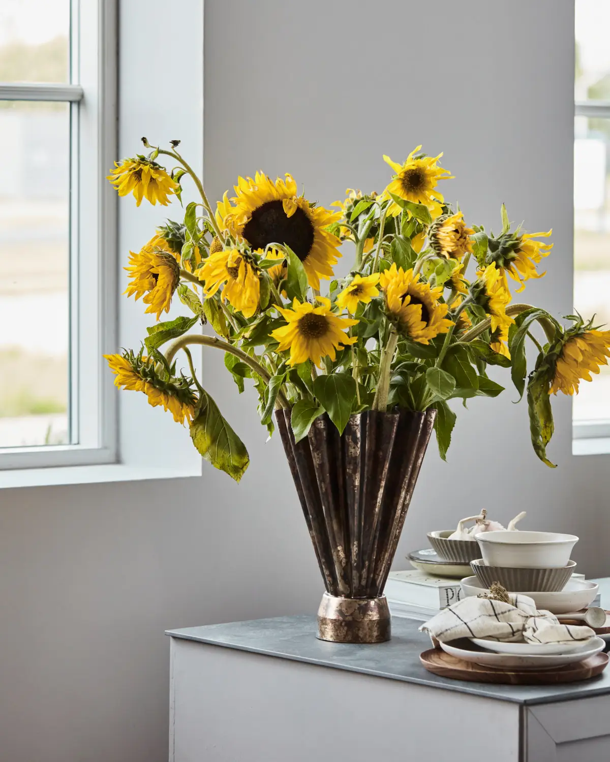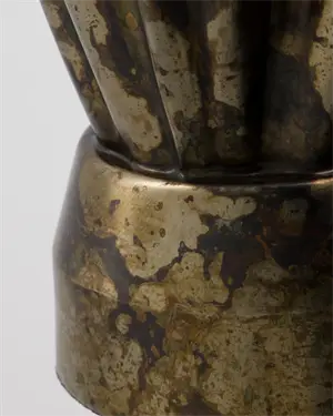 Denne håndlavede vase bringer et strejf af tidløs elegance til dit hjem med sin antikbrune finish. Den er lavet af jern, og dens unikke bølgede form supplerer smukt blomsterarrangementer og gør den til et fantastisk midtpunkt. Denne vase er ikke bare funktionel, men et kunstværk i sig selv, perfekt til at give karakter til ethvert rum.- Håndlavet jerndesign- Antik brun finish- Kunstnerisk bølget form- Ideel til blomsterudstillingerInkorporer dette udsøgte møbel i din indretning, og lad det betage dine gæster.