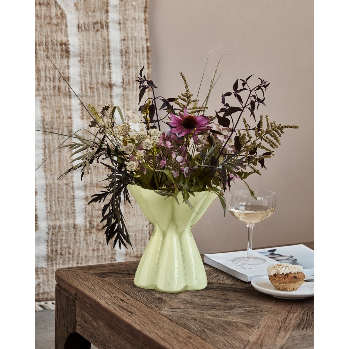 Denne mundblæste glasvase i en blød gul nuance er håndlavet med præcision og giver ethvert miljø et feminint præg. Dens bløde kurver er perfekte til at fremvise buketter eller friskplukkede grene og skabe et elegant fokuspunkt i din bolig.- Mundblæst glashåndværk- Elegant blød gul nuance- Ideel til buketter- Feminint og stilrent designFøj dette tidløse møbel til din indretning.