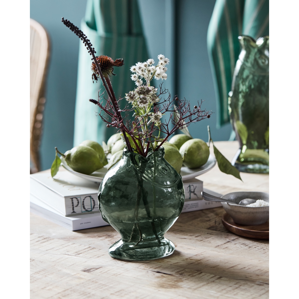 Giv din boligindretning et strejf af lunefuldhed med denne unikt udformede vase. Det røgfarvede, grå glas er mundblæst med stor dygtighed og danner en fortryllende fiskeform, der giver personlighed og charme til ethvert rum. Dens håndlavede natur sikrer, at hvert stykke er unikt, hvilket gør det til en særlig tilføjelse til din samling. Uanset om den placeres på en hylde eller et bord, fungerer den som et dejligt fokuspunkt, der indbyder til samtale og interesse. -Håndlavet med mundblæst glas- Unikt fiskeformet design- Elegant røget grå farve- Tilføjer charme til ethvert rumBrug denne karakteristiske vase i din indretning som et kunstnerisk statement.