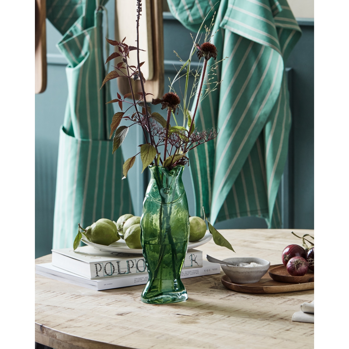 Denne unikke grønne vase er skabt i mundblæst glas og formet som en fisk, hvilket tilføjer et kunstnerisk og livligt præg til din boligindretning. Med sine glatte kurver og subtile detaljer skaber den en følelse af personlighed og glæde i ethvert rum. - Mundblæst glas - Unik fiskeform - Tilføjer personlighed - Farve: Grøn Skab et levende element i din boligindretning med denne charmerende vase.