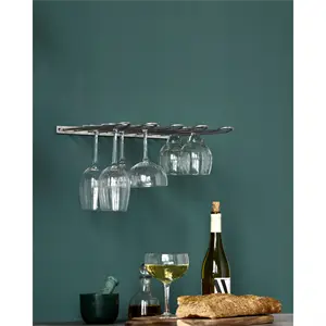 "Bring et strejf af elegance til din hjemmebar eller dit køkken med denne glasholder i antik sølvfinish. Den er fremstillet af rustfrit stål og er en perfekt blanding af stil og funktionalitet. Du kan nemt montere den på væggen, under et skab eller under en hylde for at udstille dine yndlingsglas. Det slanke design optimerer pladsen og tilføjer samtidig et dekorativt element til din indretning. Det er mere end bare en opbevaringsløsning