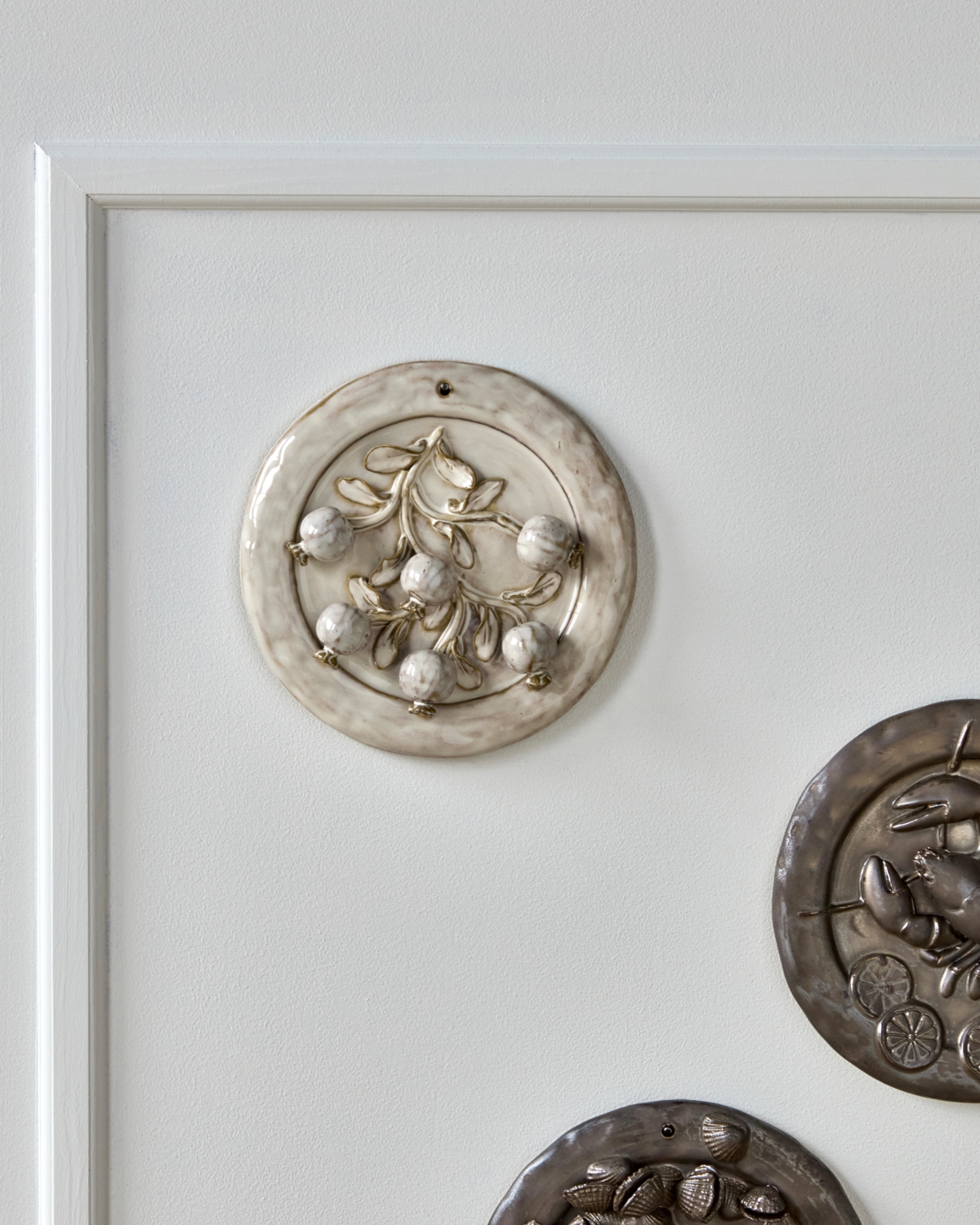 Denne runde wall art i råhvidt stentøj balancerer det moderne og det legende med dekorative frugtmotiver og et smil på læben. Håndlavet og med en glaseret overflade tilføjer den karakter og kreativitet i dit hjem. Skab et personligt statement på væggen alene, eller sæt flere sammen for at skabe et inspirerende udtryk.- Håndlavet stentøj.- Elegant råhvid glasur.- Unikt frugtdekoreret design.- Inspirerer til personlig stil.Hæng op alene, eller sæt flere sammen for at skabe ekstra glæde og kreativitet i din indretning.