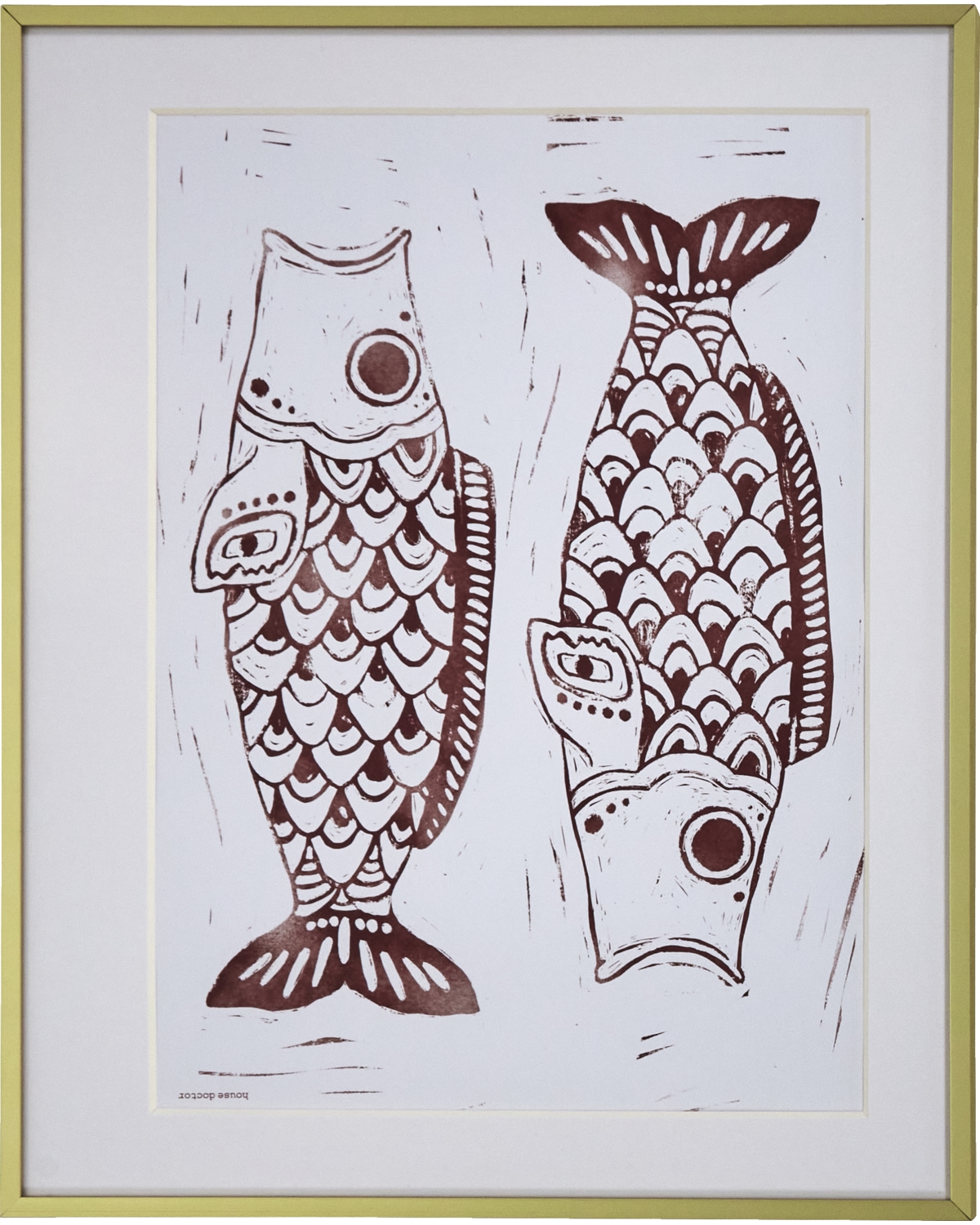 Forvandl dine vægge med dette livlige stykke vægkunst. Det viser kunstneriske fisk i en slående mørkerød nuance, perfekt indrammet i en elegant gylden aluminiumsramme med en hvid passepartout. Blandingen af design og farver giver liv og livlighed til din gallerivæg eller kan stå alene som et fængslende fokuspunkt i dit hjem. - Slank, gylden aluminiumsramme - Kunstnerisk fiskedesign - Slående og levende - Iøjnefaldende design Tilføj et strejf af kreativitet til din boligindretning med dette iøjnefaldende kunstværk.