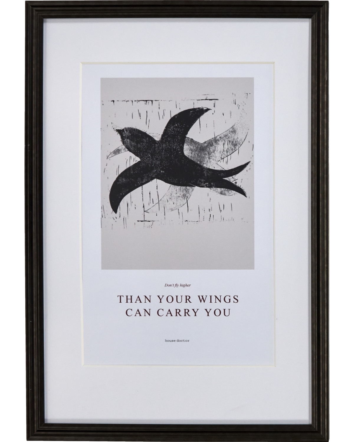 Tilføj et strejf af kunstnerisk charme til din boligindretning med denne udsøgte vægkunst. En markant sort fugl i flugt, ledsaget af tankevækkende tekst, skaber et drømmende og kunstnerisk motiv. Designet er elegant indrammet i elegant sort aluminium og fremhævet af en hvid passepartout, der giver dybde og fokus til kunstværket. Dette værk er perfekt til at skabe en harmonisk udstilling og passer smukt sammen med anden kunstnerisk vægkunst, hvilket giver en stilfuld tilføjelse til din bolig.- Drømmeagtigt kunstnerisk motiv- Elegant sort aluminiumsramme- Elegant hvid passepartout- Supplerer kunstneriske samlingerLad denne vægkunst bringe charme og karakter til din bolig.