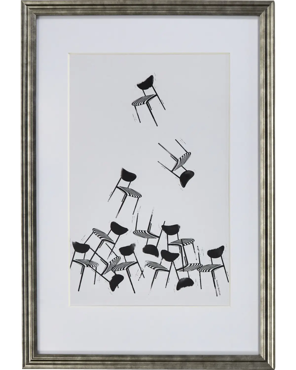 Tilføj et strejf af moderne charme til din indretning med dette slående stykke vægkunst. Med et legende stolemotiv i en ramme af antikt sølv giver den klassiske sort-hvide palet alsidige stylingmuligheder. Dette kunstværk supplerer problemfrit farverig indretning eller skaber et elegant, grafisk look, når det kombineres med andre monokrome værker. Det moderne design gør det til et perfekt fokuspunkt i ethvert rum og tilføjer raffinement med et legende twist.- Antik sølvramme- Legende stoledesign- Klassisk monokrom palet- Alsidige muligheder for stylingBring et kunstnerisk udtryk til dit hjem i dag.