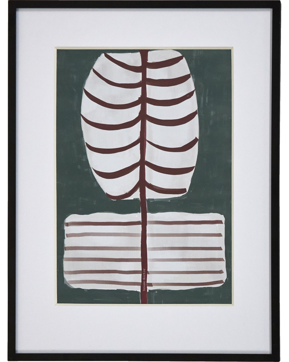 Bring et strejf af ekspressionistisk kunst ind i dit hjem med dette fængslende vægstykke. Designet har et plantemotiv på en mørkegrøn baggrund og er indrammet i sort aluminium med en hvid passepartout, hvilket giver et moderne og elegant look. Denne vægkunst tilfører en indbydende atmosfære til din stue, entré eller dit soveværelse og supplerer smukt andre dele af indretningen. Kombinationen af materialer som glas og MDF sikrer holdbarhed og stil, hvilket gør det til et perfekt valg for dem, der ønsker at bringe farve og karakter ind i deres rum.- Ekspressionistisk plantemotiv- Sort aluminiumsramme- Hvid passepartout inkluderet- Ideel til opholdsrumTilføj dette kunstneriske touch til din boligindretning.