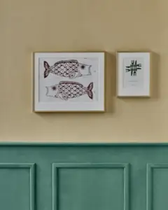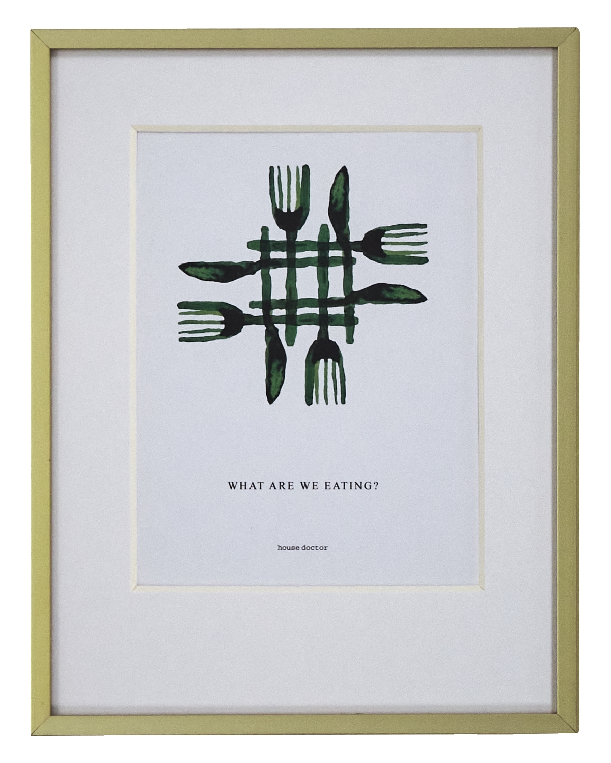 Forbedr din køkkenindretning med denne vægkunst, der består af en plakat i en glasramme med en guldfarvet aluminiumskant. Det kunstneriske grønne bestikmotiv tilføjer charme til dit rum, mens den hvide passepartout giver en sofistikeret kontrast. Den er perfekt til en enkeltstående udstilling eller som en del af en kollektion og passer perfekt sammen med andre værker fra vægkunstserien for at opfriske dit hjem med et levende strejf af farve.- Kunstnerisk grønt bestikdesign- Guldfarvet aluminiumsramme- Velegnet til køkkener- Let at kombinere med andre delePift dine køkkenvægge op med dette udsøgte værk.