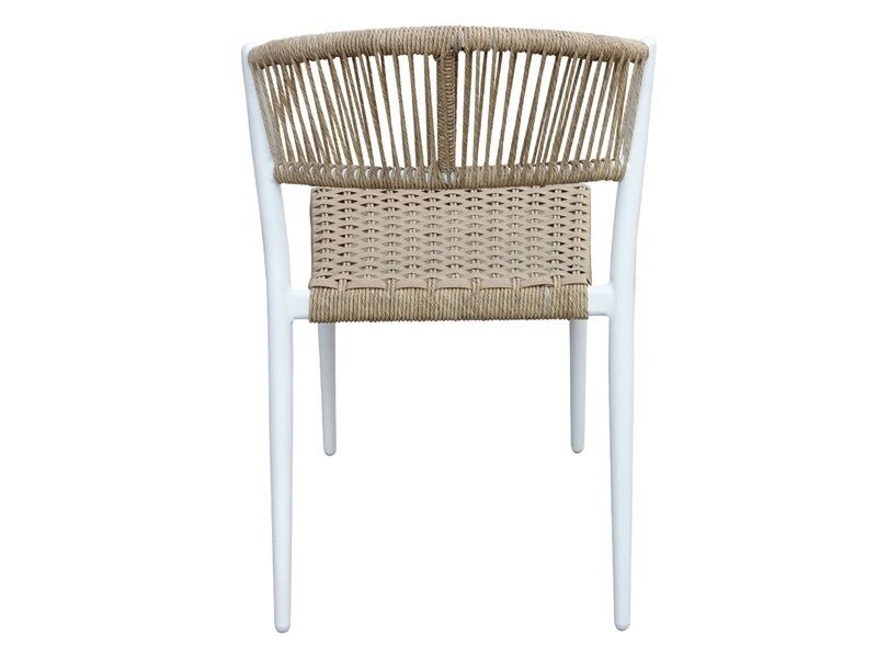 Astrid stol i et flot og elegant design med medfølgende UV resistente og vandtæt sort hynde. Den kurvede ryg giver stolen en fantastisk komfort, som ikke lige ses ud fra den stilrene look. Stellet er udarbejdet i coated aluminium. Samt er ryg og sæde flettet i rope som er uv beskyttet. Stolen kan derfor bruges både indendørs og udendørs.
