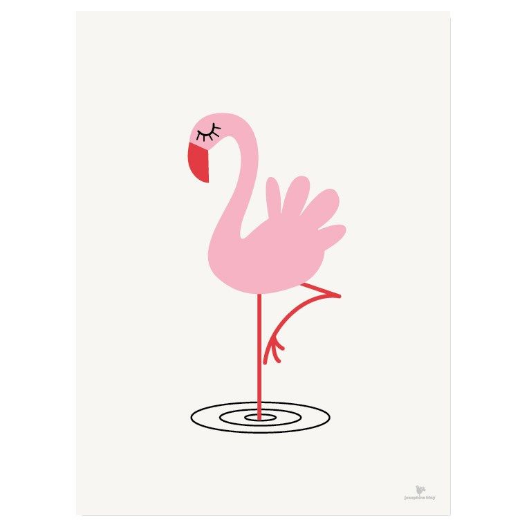 Sød plakat fra danske KAI Copenhagen. Den elegante lyserøde flamingo er designet af KAI Copenhagens grundlægger Josephine Blay. Hæng plakaten på børneværelset eller i et andet rum i hjemmet og skab et sødt og hyggeligt udtryk. Plakaten med den langbenede fugl vil med garanti skabe glæde hos både store og små. Plakaten fås også i 30x40 cm.