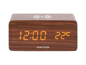 Karlsson - Alarm clock Block w. phone charger LED dark wood veneer, white LED