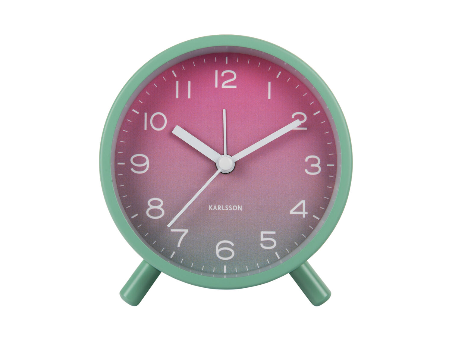Dette vækkeur fra Karlsson kombinerer funktionalitet med et kunstnerisk udtryk. Urskiven har en gradient, der går fra pink til grøn, og giver en visuel dybde til dit rum. Uret er lavet af jern, hvilket sikrer holdbarhed ved daglig brug.