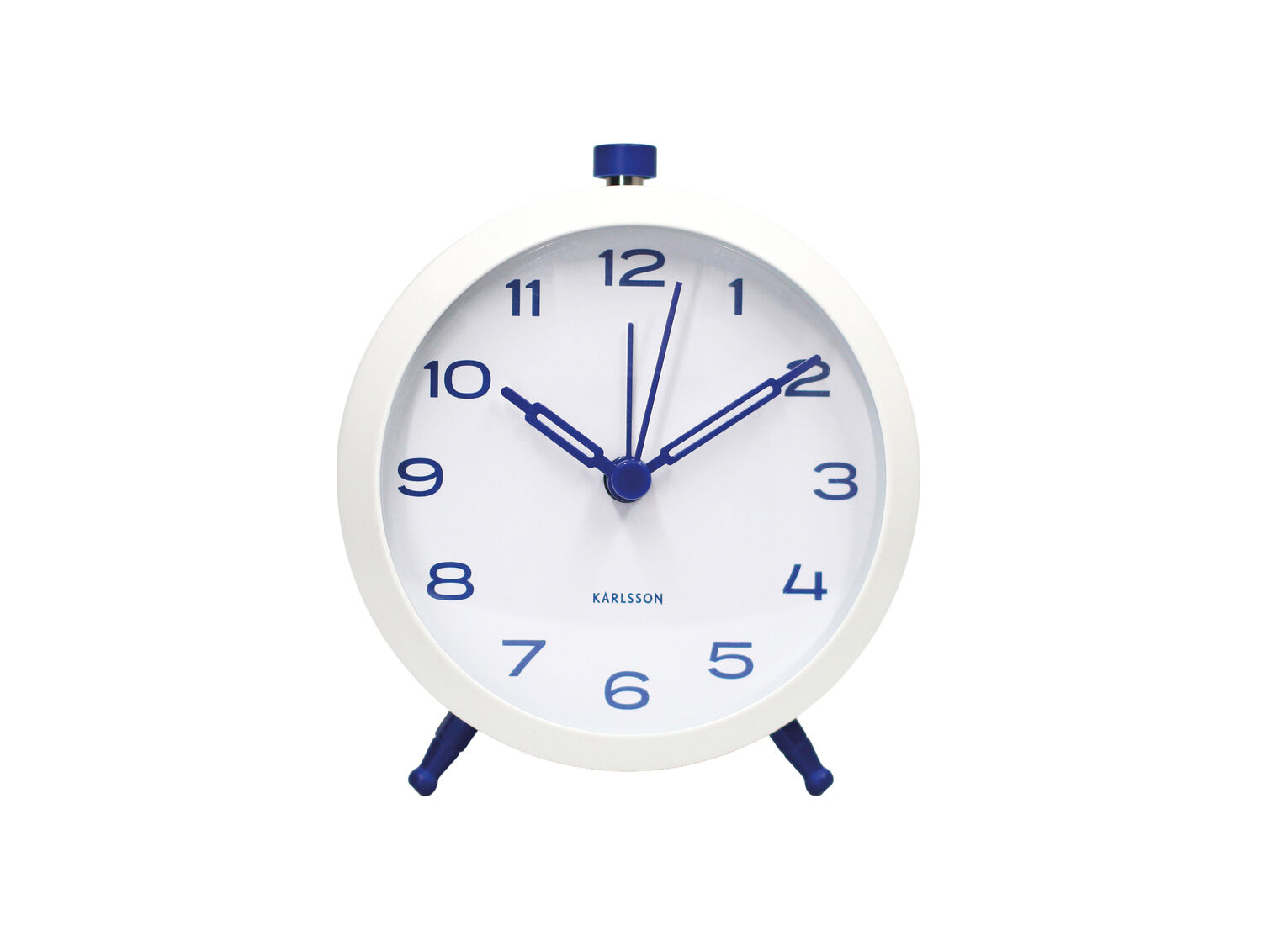 Dette vækkeur fra Karlsson er konstrueret i jern, hvilket giver en robust og langtidsholdbar ramme. Den hvide farve med koboltblå tal og viser skaber en harmonisk balance mellem klassisk og moderne udtryk, der passer ind i forskellige indretningsstile.