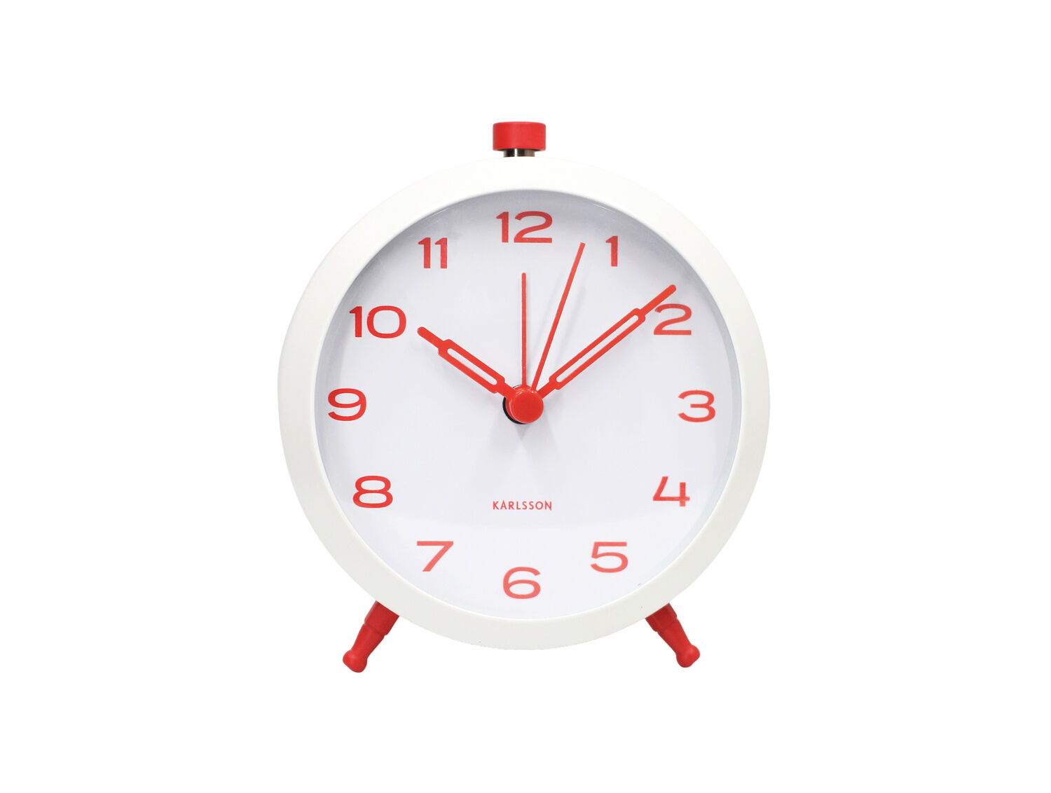 Har du prøvet vækkeure af plastik, der knækker eller holder op med at virke efter kort tid? Jernkonstruktionen i dette Karlsson-ur giver dig en langtidsholdbar løsning. Materialet tåler daglig brug, og de to skarlagenrøde ben sikrer stabil placering på dit natbord.