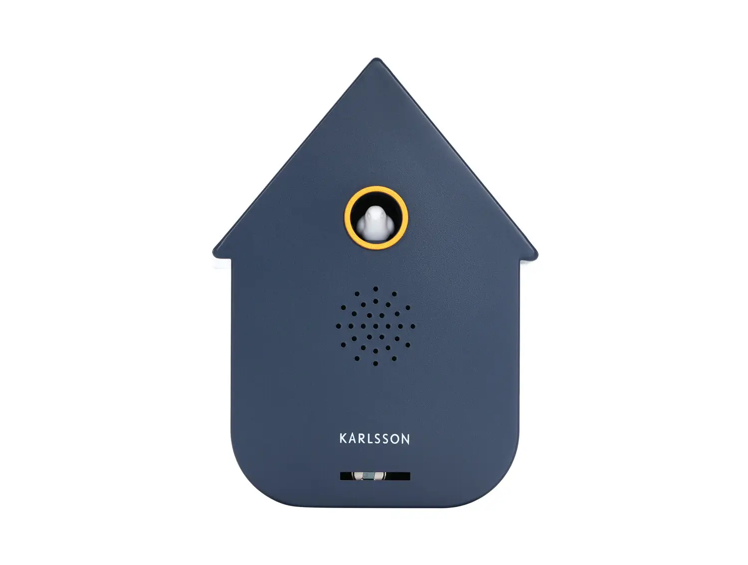 Dette moderne kukkeur fra Karlsson kombinerer traditionelt design med nutidig funktionalitet. Det husformede ur i mørkeblå polystyren bringer karakter til din væg, uanset om det hænger i stuen eller på kontoret. Materialet gør uret let at hænge op og nemt at vedligeholde.