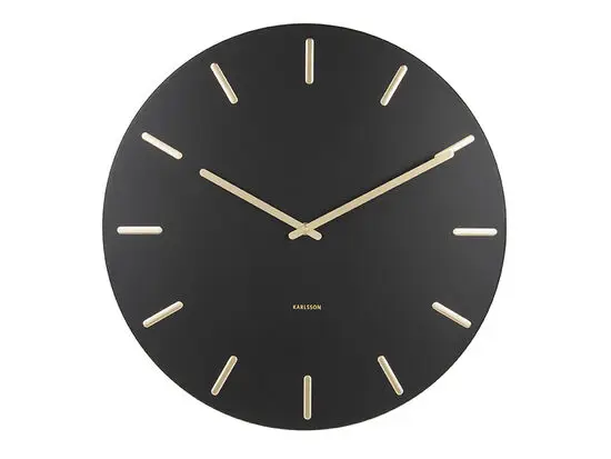 Karlsson - Wall clock Charm black steel with gold battons