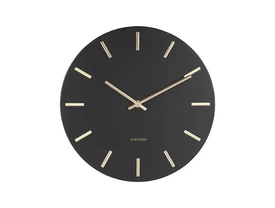 Karlsson - Wall clock Charm steel black w.gold battons small