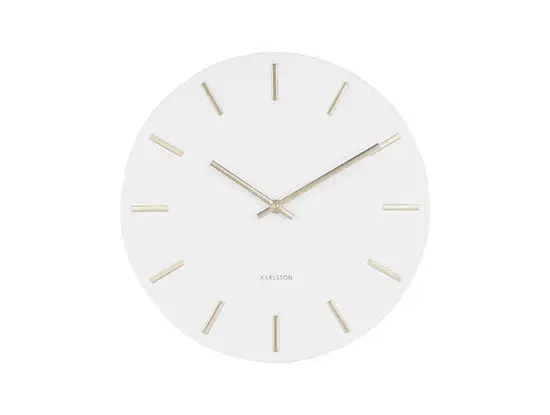 Karlsson - Wall clock Charm steel white w.gold battons small