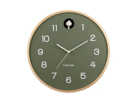Karlsson - Wall clock Natural Cuckoo birch wood jungle green