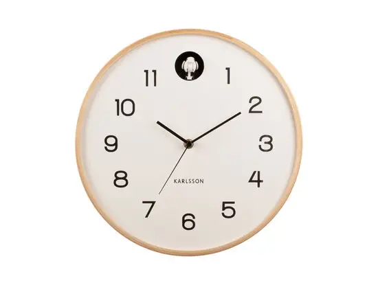 Karlsson - Wall clock Natural Cuckoo birch wood white