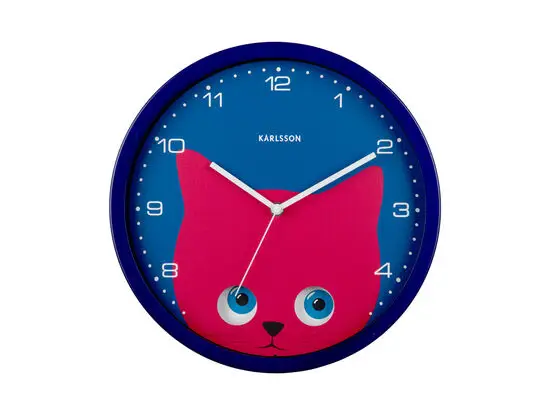 Karlsson - Wall clock Peekaboo Cat dark blue