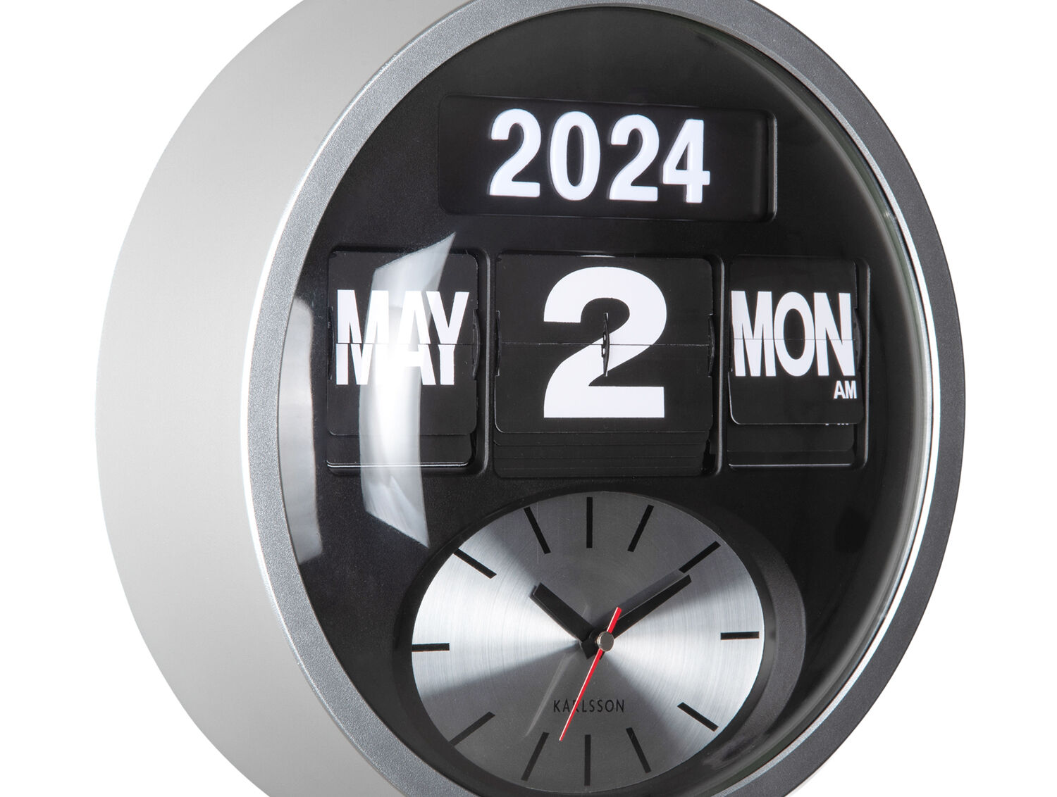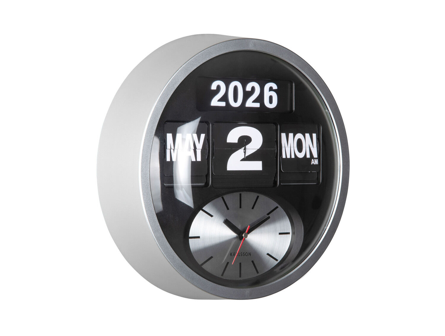Karlsson - Wall clock Round Flip silver