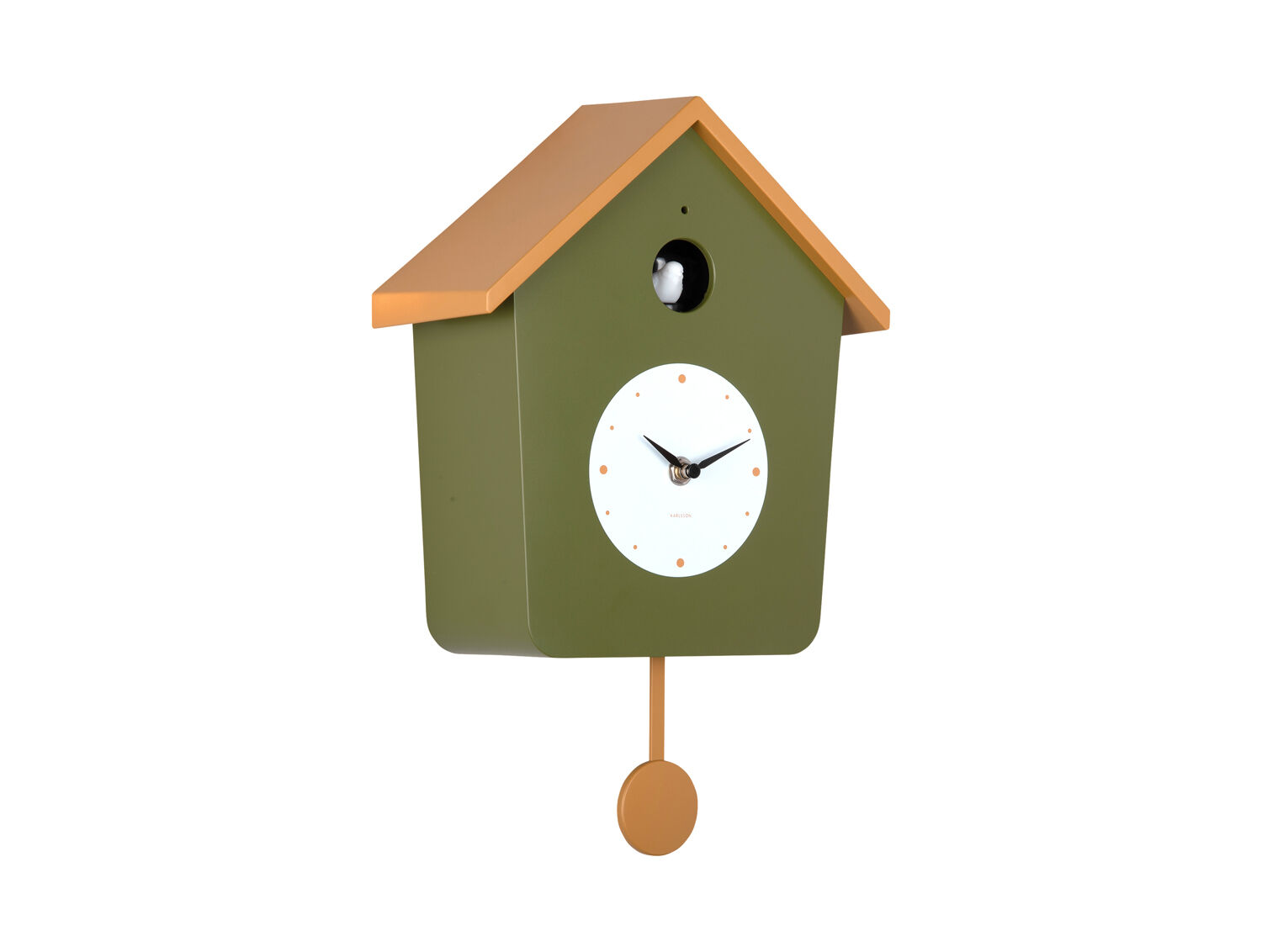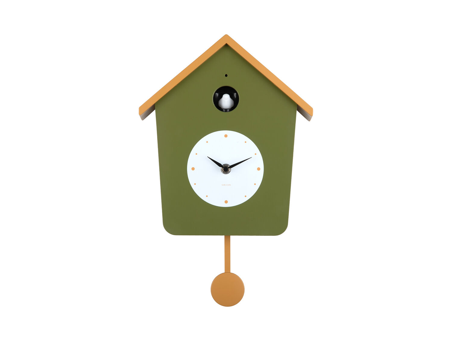 Karlsson - Wall clock Cuckoo Light army green w. ochre yellow