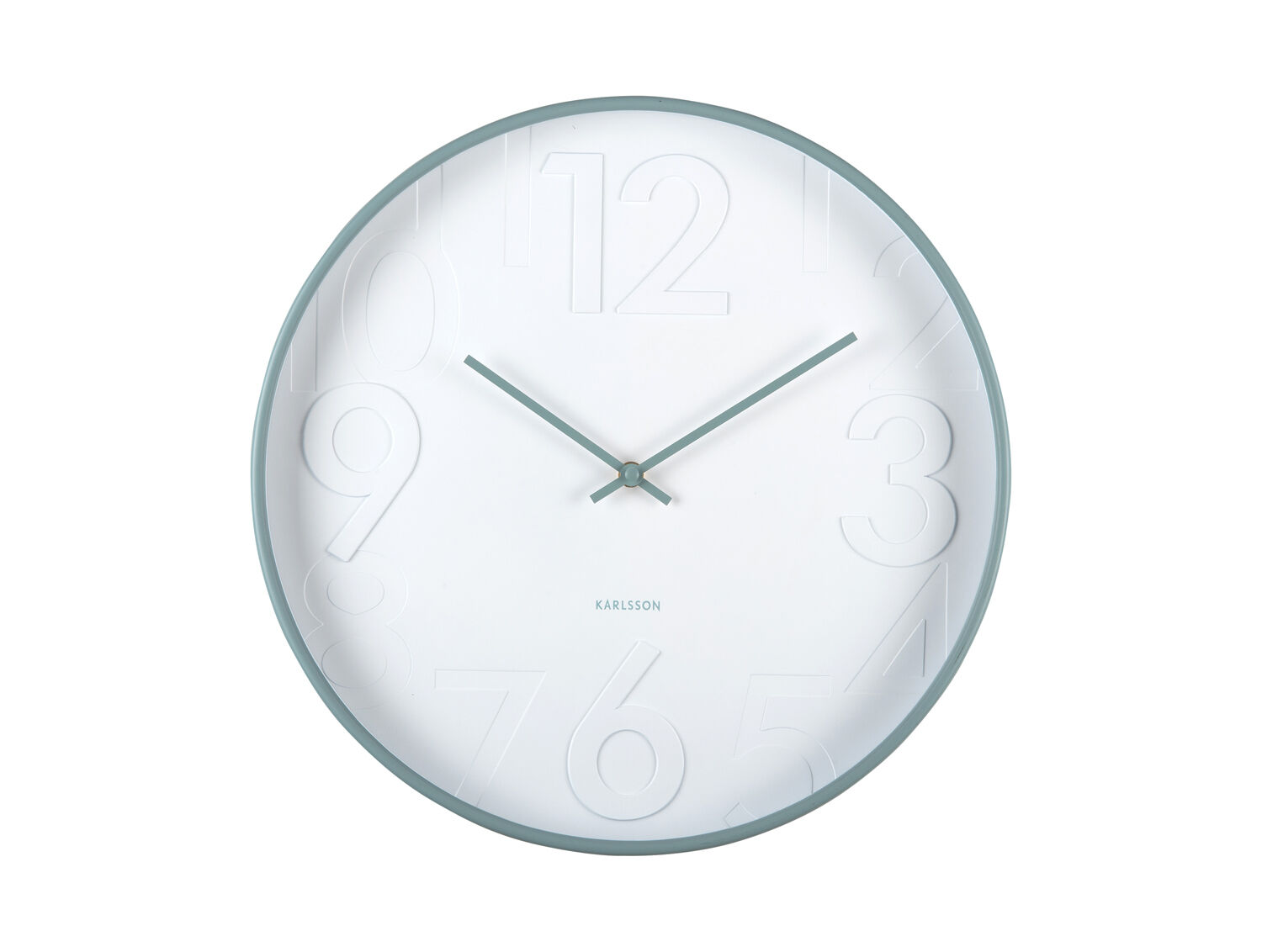 Væguret Ayuno fra Karlsson har en diameter på 40 cm, hvilket gør det synligt og let at aflæse fra en afstand. Den tågede blå nuance giver et roligt, moderne udtryk, der passer til mange indretningsstile. Uret er fremstillet af polypropylen (PP) – et let og holdbart materiale, der er nemt at vedligeholde.