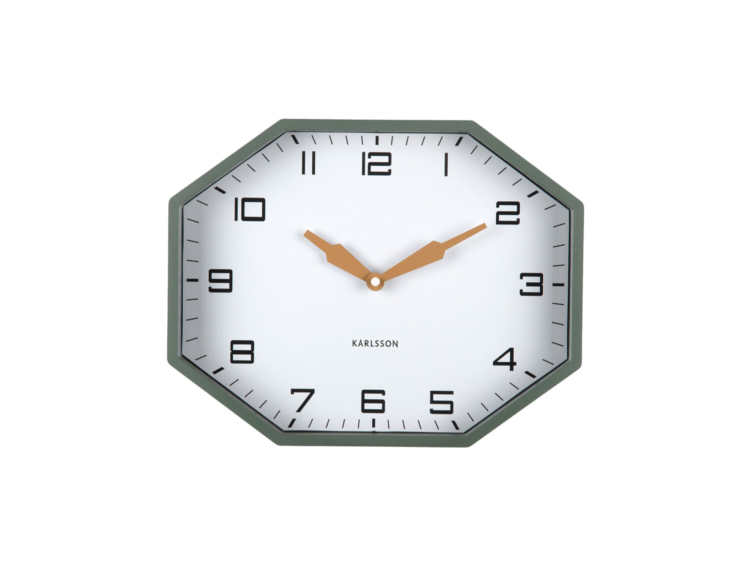 Karlsson - Wall clock Modern Factory Octagon jungle green w. ochre yellow