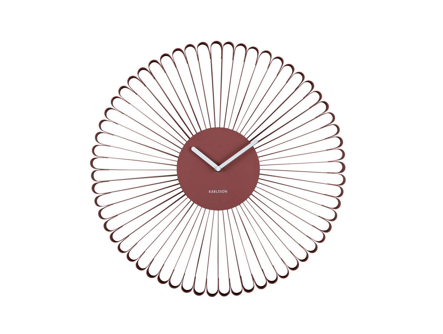 Den røde okkerfarve bringer en varm nuance ind i rummet. Hvis du leder efter et ur, der kan stå alene som dekorativt element eller supplere eksisterende farver i din indretning, giver denne tone dig begge muligheder. Jernkonstruktionen sikrer holdbarhed over tid.