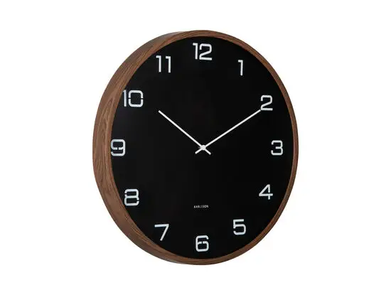 Dette vægur fra Karlsson har en diameter på 50,8 cm, hvilket gør det synligt fra afstand og giver det en markant plads i dit rum. Den sorte urskive med hvide tal skaber en klar kontrast, så du altid kan aflæse tiden uden besvær. Trærammen er synlig fra siden og tilføjer et naturligt element til det moderne design.