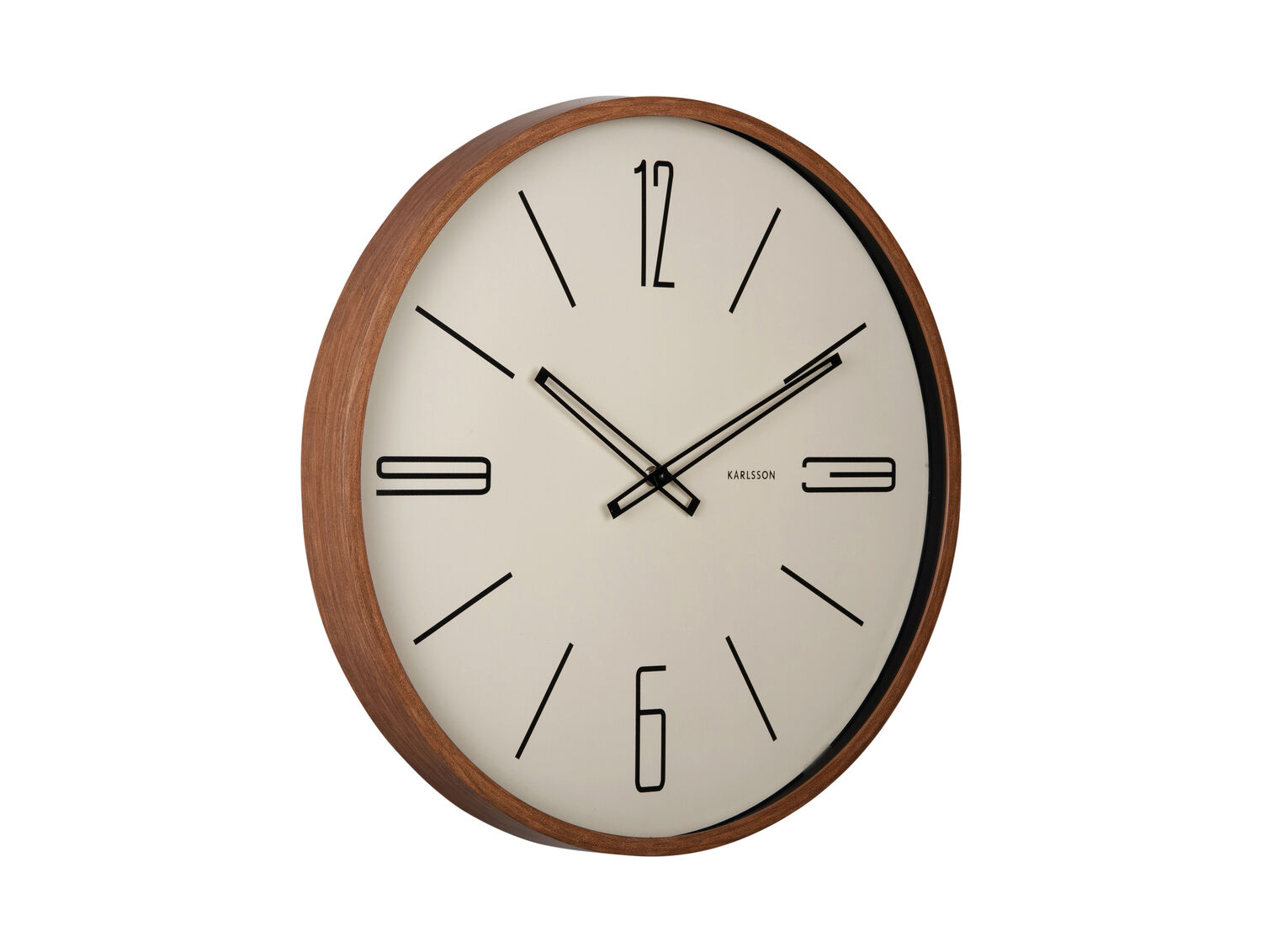 Dette vægur fra Karlsson kombinerer moderne design med praktisk funktion. De runde tal ved 12, 3, 6 og 9 er udført i en moderne skrifttype, der giver uret et stilfuldt præg. Urskiven har minimalistiske sorte markeringer, som gør det nemt at aflæse tiden hurtigt.