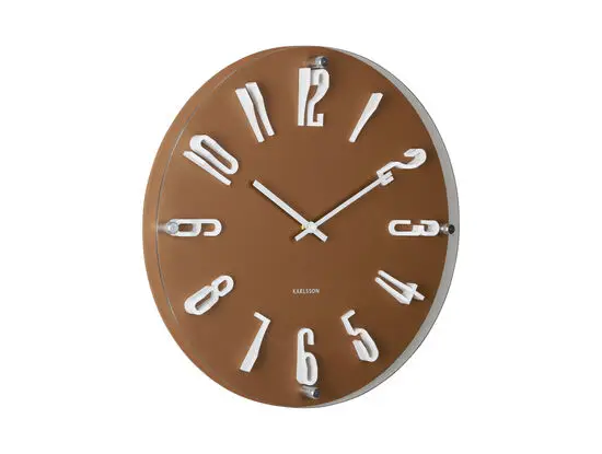 Dette vægur fra Karlsson kombinerer funktionalitet med moderne design. De store, tredimensionelle hvide tal ved hver timeposition gør det nemt at aflæse tiden, selv fra afstand. Den mocha-brune urskive tilføjer varme til dit rum og passer ind i forskellige indretningsstile.