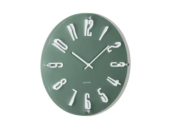 Den junglegrønne farve giver dit rum et moderne og friskt udtryk, hvis du ønsker at tilføje et strejf af farve uden at overvælde indretningen. Melamin er et holdbart materiale, der tåler daglig brug, og de hvide 3D-tal sikrer, at du altid kan aflæse tiden tydeligt, selv på afstand.