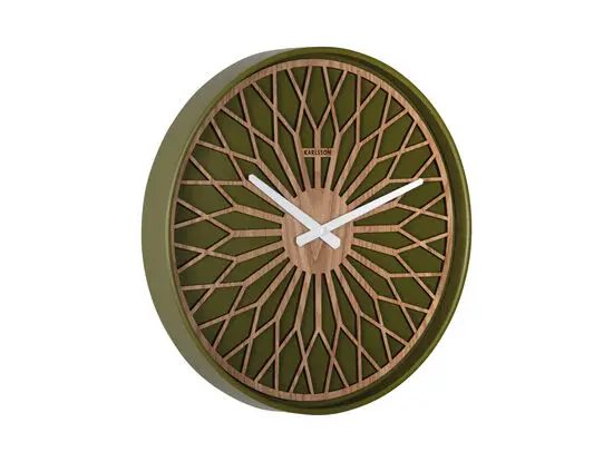 Dette vægur fra Karlsson har et radialt mønster, der minder om en solblomst. Det grønne design bringer et naturligt element ind i dit rum og fungerer som et visuelt omdrejningspunkt på væggen, der går ud over blot at vise tiden.