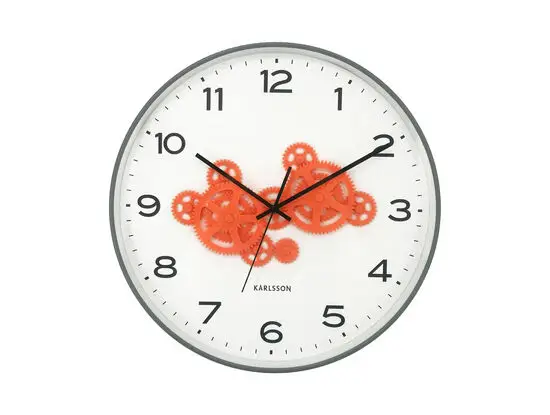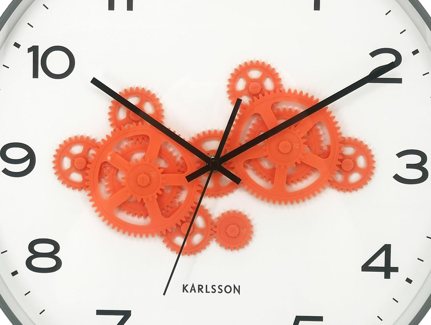 Karlsson - Wall clock Open Gear mouse grey w. bright orange