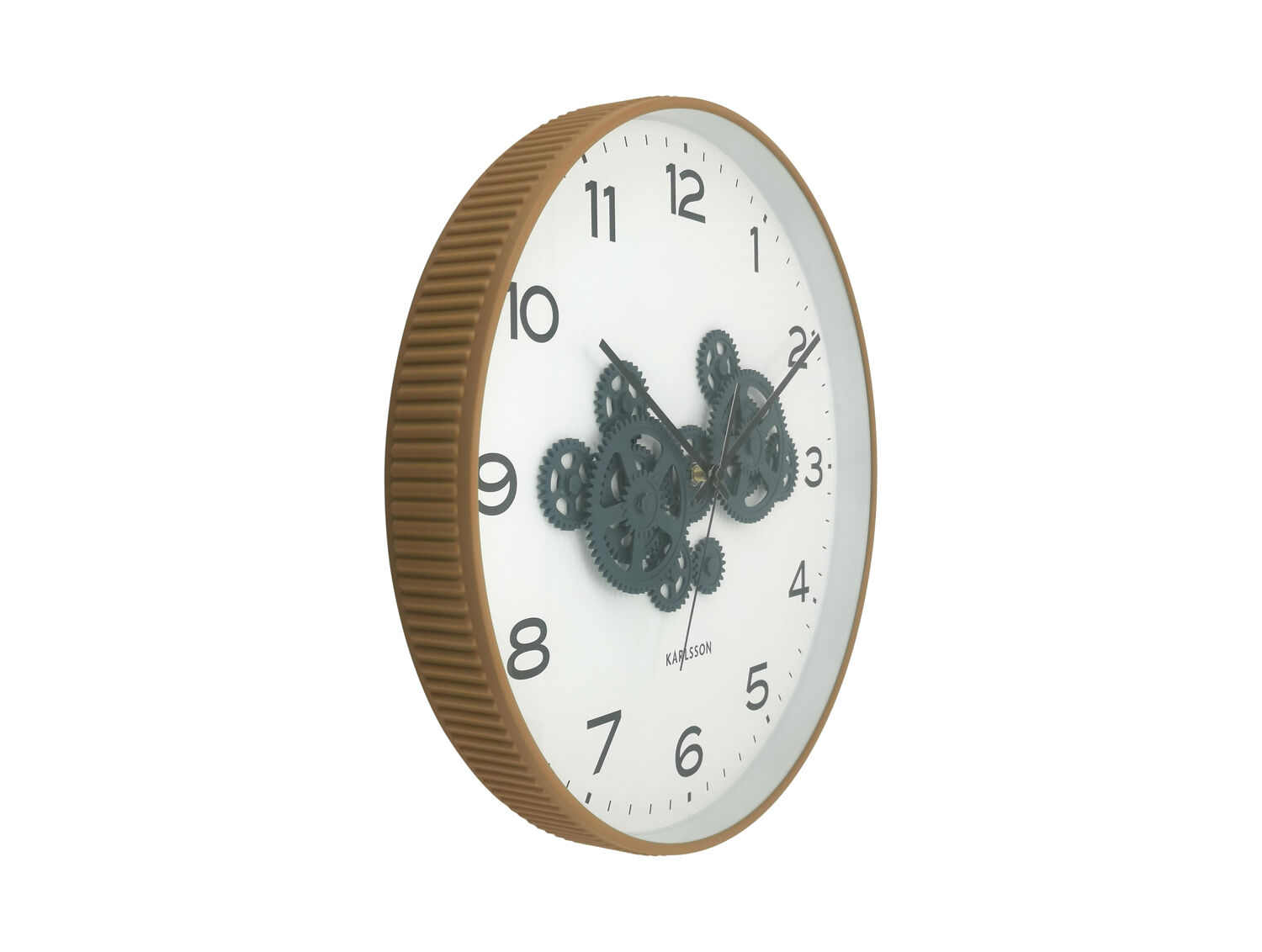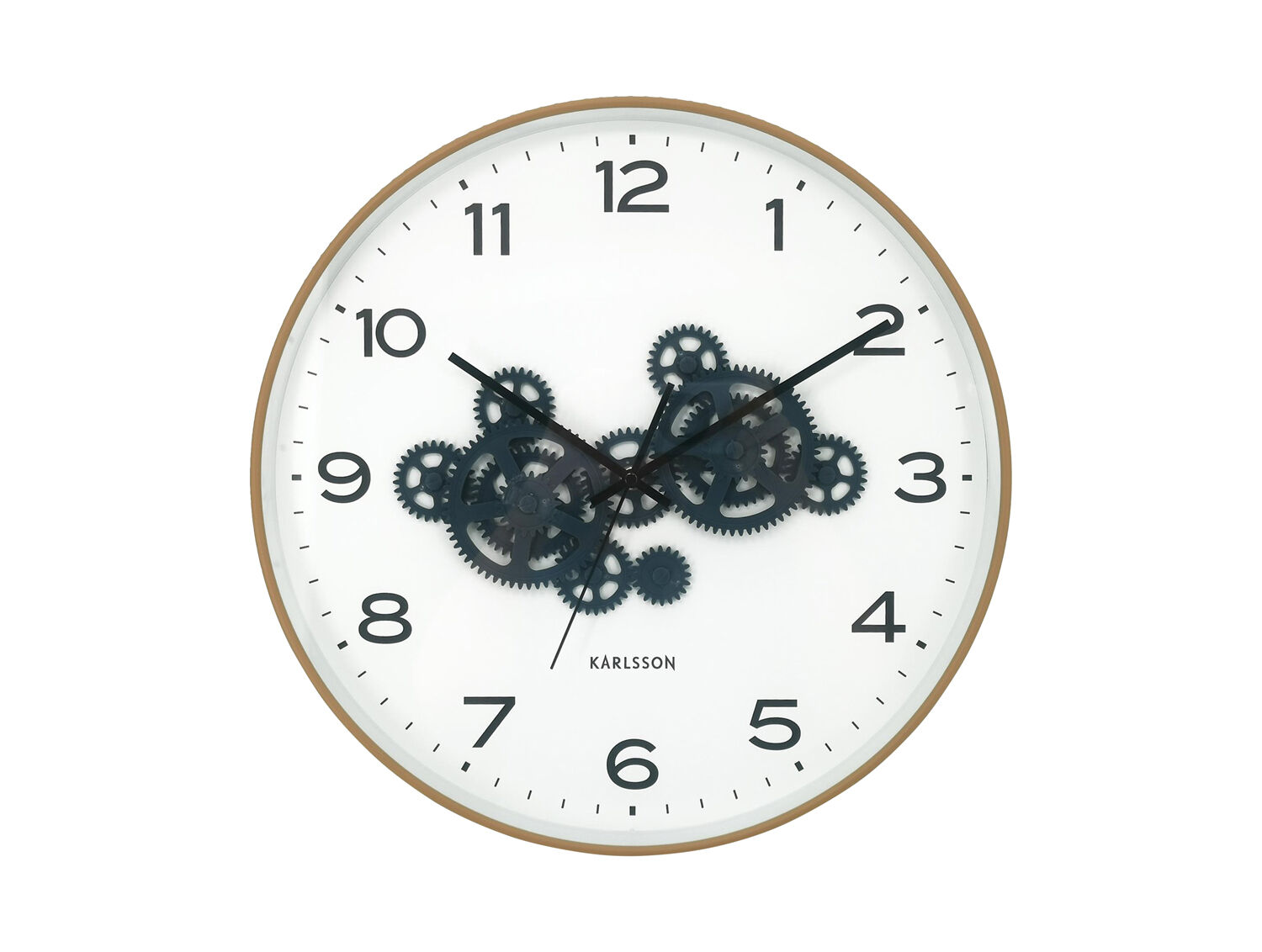 Dette vægur fra Karlsson kombinerer en okkergul ramme med synlige mørkeblå tandhjul, der giver et moderne og kreativt udtryk. Den hvide urskive med sorte tal og visere sikrer god læsbarhed, mens tandhjulene i midten tilføjer et industrielt twist til designet.