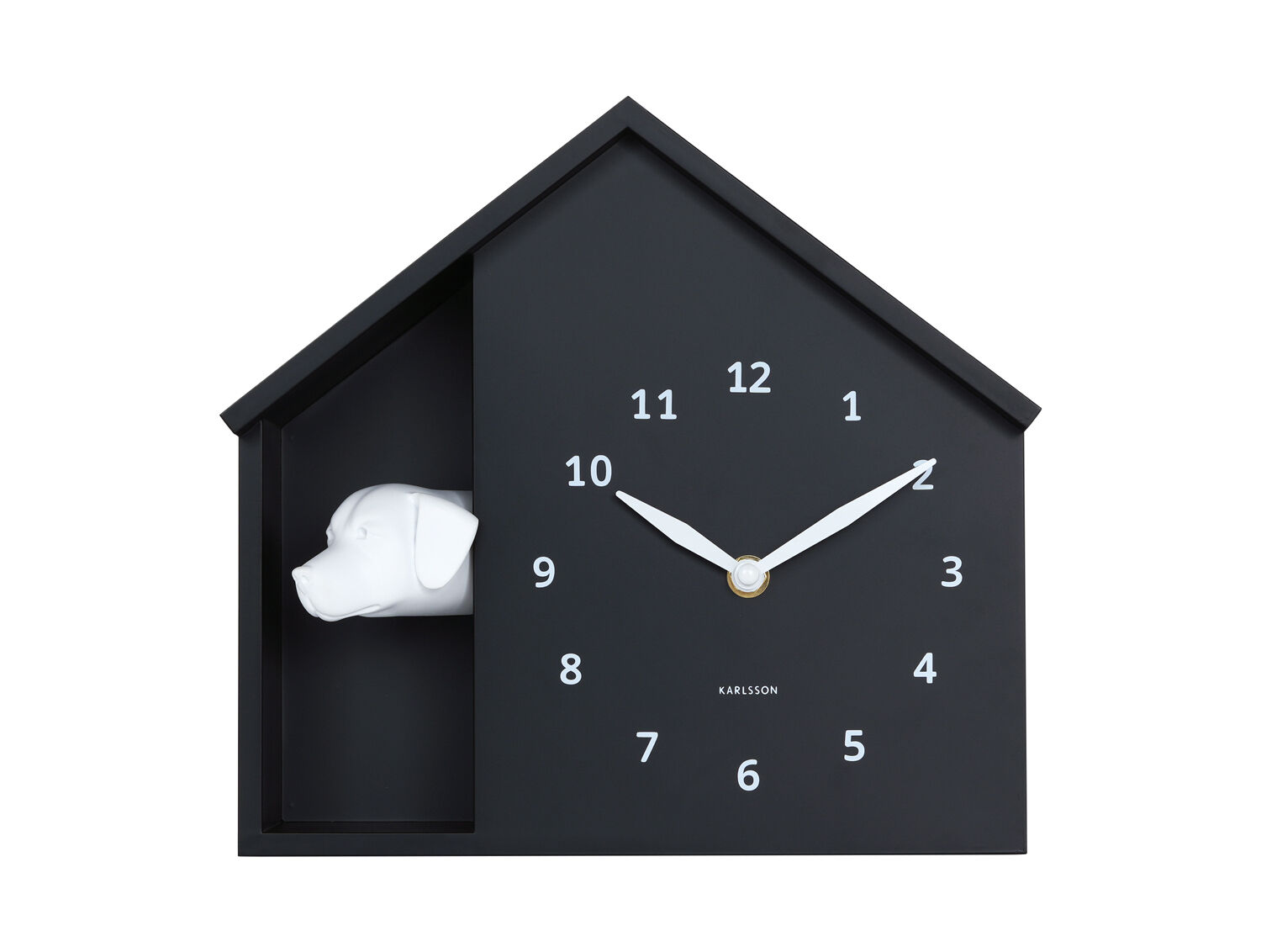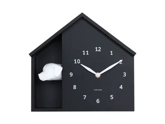 Med en dybde på 10,3 cm, længde på 24,9 cm, bredde på 26 cm og højde på 29 cm får du et ur, der fylder tilstrækkeligt til at blive bemærket uden at dominere væggen. Husformen med den nysgerrige hund giver et unikt udtryk, der appellerer til dem, der værdsætter designdetaljer med et twist.