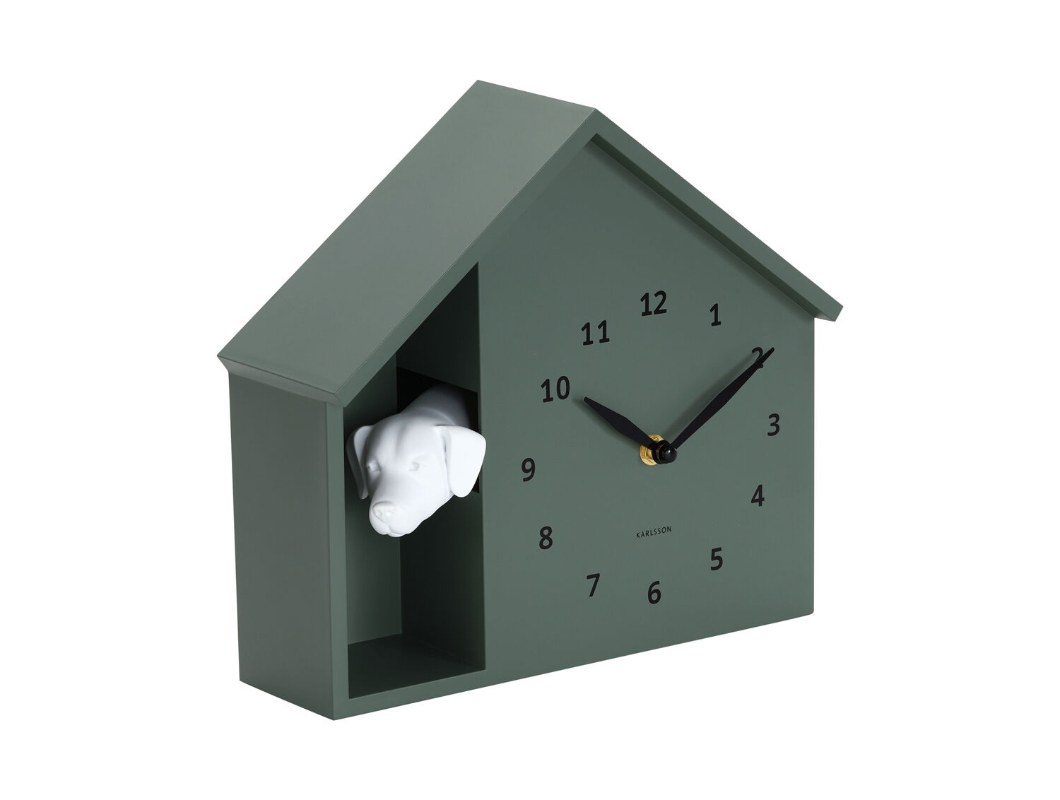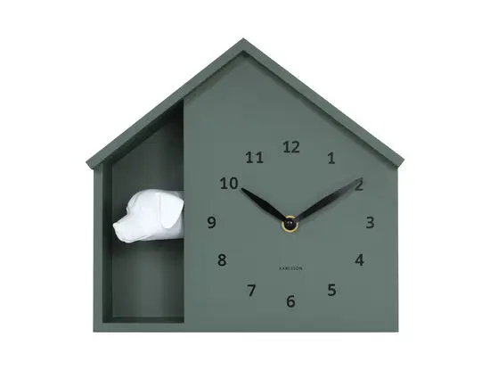 Dette vægur fra Karlsson kombinerer funktion med et legende design. Den junglegrønne farve tilføjer et friskt pust til dit hjem, mens den hvide hundehovedfigur, der kigger ud fra åbningen, giver uret en særpræget karakter.