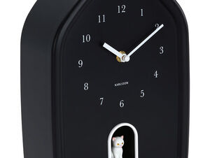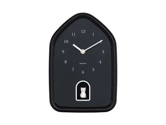 Dette vægur fra Karlsson er fremstillet af polystyren (PS), et let og holdbart materiale, der gør det nemt at hænge op uden at belaste væggen. Den sorte farve passer ind i de fleste indretningsstile, mens det husformede design med en lille hvid kattefigur tilføjer et legende element til dit rum.