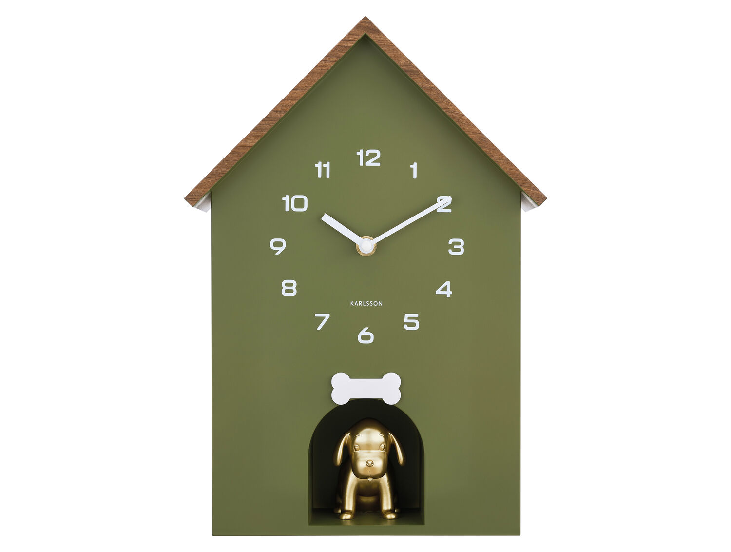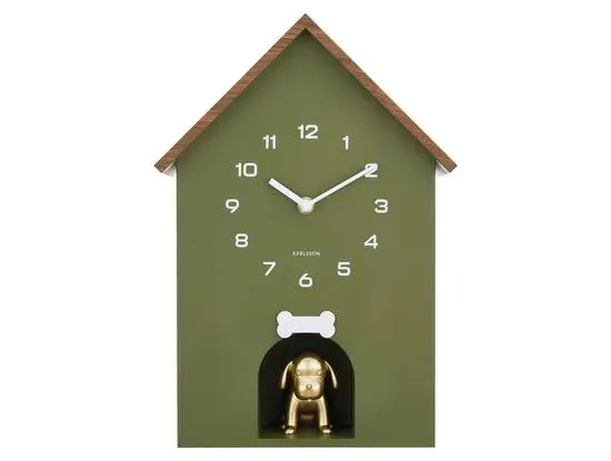 Den lille gyldne hundefigur under urskiven giver et kunstnerisk twist, der appellerer til dig, som værdsætter originale detaljer. Polystyrenmaterialet sikrer, at uret er let at montere og holder sin form over tid. Den grønne farve fungerer godt i både stuer, køkkener og børneværelser, hvor du ønsker et friskt pust.