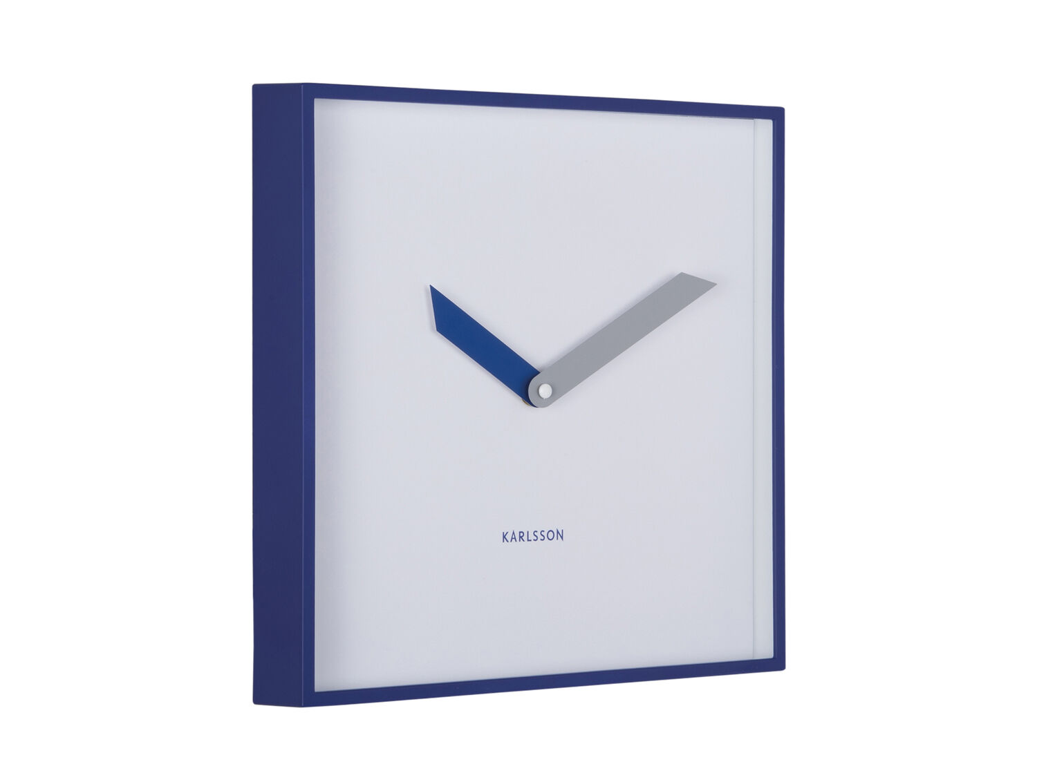 Dette kvadratiske vægur fra Karlsson har en kobaltblå ramme, der tilføjer et moderne touch til dit rum. Den hvide urskive med blå og grå visere skaber et minimalistisk udtryk, der passer til forskellige indretningsstile. Uret er fremstillet af plastik og måler 28,3 cm i både bredde og højde.