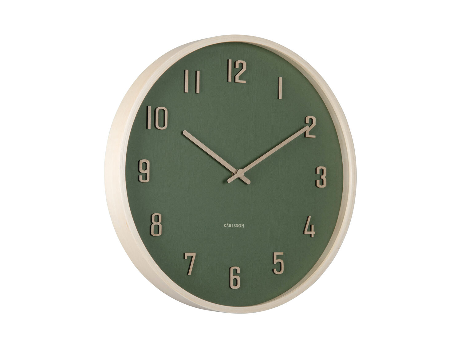 Dette vægur fra Karlsson kombinerer en mørkegrøn urskive med en ramme i lyst bøgetræ. Med en diameter på 40,8 cm giver det en tydelig tidsvisning, der passer til både hjemmet og kontoret uden at dominere rummet.