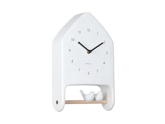 Dette vægur fra Karlsson kombinerer funktionel tidsvisning med et kunstnerisk udtryk. Det er fremstillet i polystyren (PS), hvilket gør det let at hænge op og nemt at vedligeholde. Den hvide farve passer naturligt ind i forskellige indretningsstile, mens det husformede design med fugledetaljer tilføjer personlighed til dit rum.