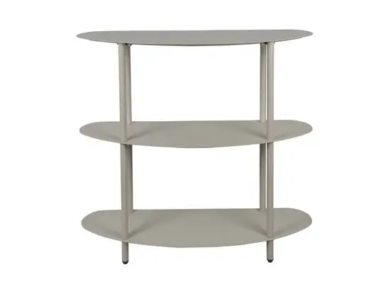 Dette kabinet er fremstillet af jern, hvilket giver en solid og stabil konstruktion. Materialet bidrager til et moderne, industrielt udtryk i varm grå, der nemt kan kombineres med andre elementer i dit hjem. De tre ovale hylder med afrundede kanter skaber en indbydende form.
