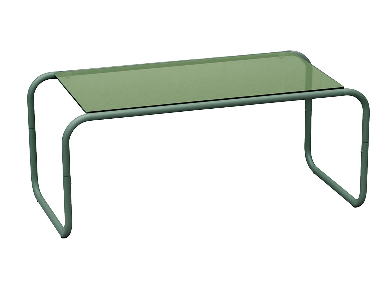 Den junglegrønne farve kan fungere som et friskt element i neutrale rum eller matche andre grønne nuancer i din indretning. Jernet har en ensartet finish, der giver bordet et moderne udtryk. De buede ben skaber en blødere silhuet end traditionelle lige ben.