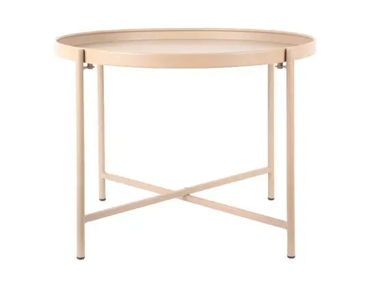 Den runde bordplade og krydsstangen mellem benene giver både stabilitet og et let udtryk. Jernkonstruktionen sikrer, at bordet holder i mange år, mens den bløde brune farve fungerer sammen med både lyse og mørke møbler. Du får et funktionelt møbel, der bidrager til rummets stil uden at kræve særlig opmærksomhed.