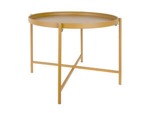 Dette sofabord fra Leitmotiv har en okkergul farve, der kan give dit rum et varmt og moderne udtryk. Bordet er lavet af jern, hvilket sikrer holdbarhed og stabilitet. Med en højde på 38,5 cm og en diameter på 50 cm passer det ind i de fleste stuer.