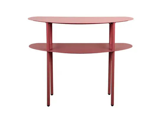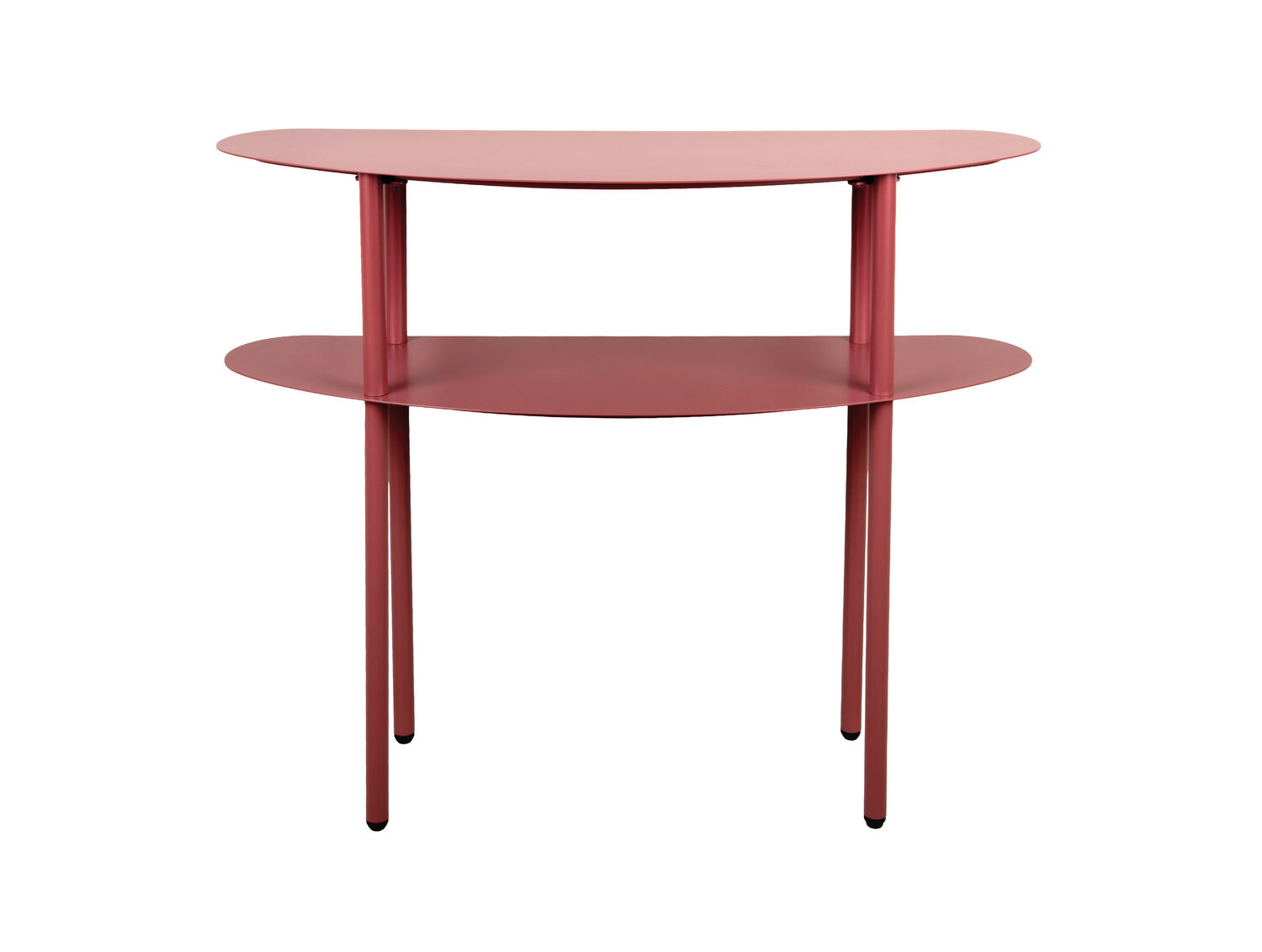 Dette konsolbord er lavet af jern, hvilket giver dig et robust møbel, der holder til daglig brug. Jernkonstruktionen sikrer stabilitet, så bordet står solidt, selv når du placerer dine ting på de to ovale overflader. Den burgunderrøde farve tilføjer karakter til dit rum.