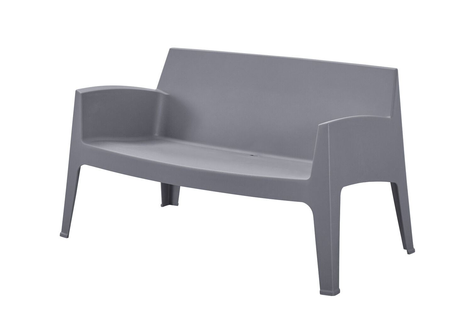 Polypropylen er anerkendt for sin robusthed. Materialet håndterer daglig brug, og den anthracite grå farve skjuler mindre pletter. De fire ben giver stabil støtte, og den integrerede rygstøtte og armlæn er formet i ét stykke med sofaen, hvilket reducerer slidte samlinger over tid.